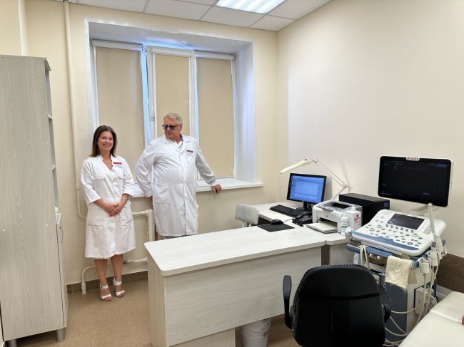 Очередной административный обход прошел в стационаре и диагностическом корпусе Республиканского клинико-диагностического центра. Главный врач Сергей Николаевич Рящиков и заместитель главного врача по хозяйственным вопросам Сергей Александрович Вагайцев проверили окончание ремонтных работ в кабинете №315 отделения ультразвуковой диагностики, были выявлены незначительные недочеты, установлены сроки для их устранения.